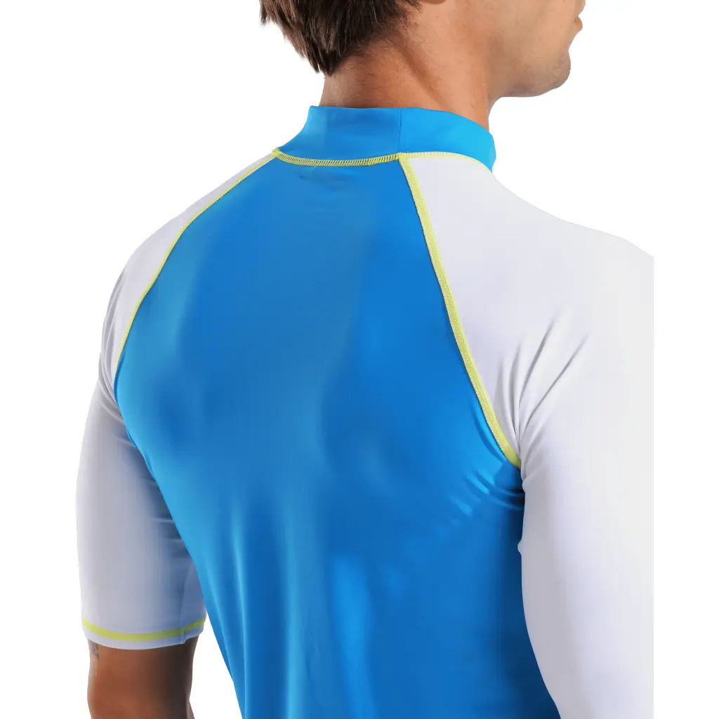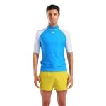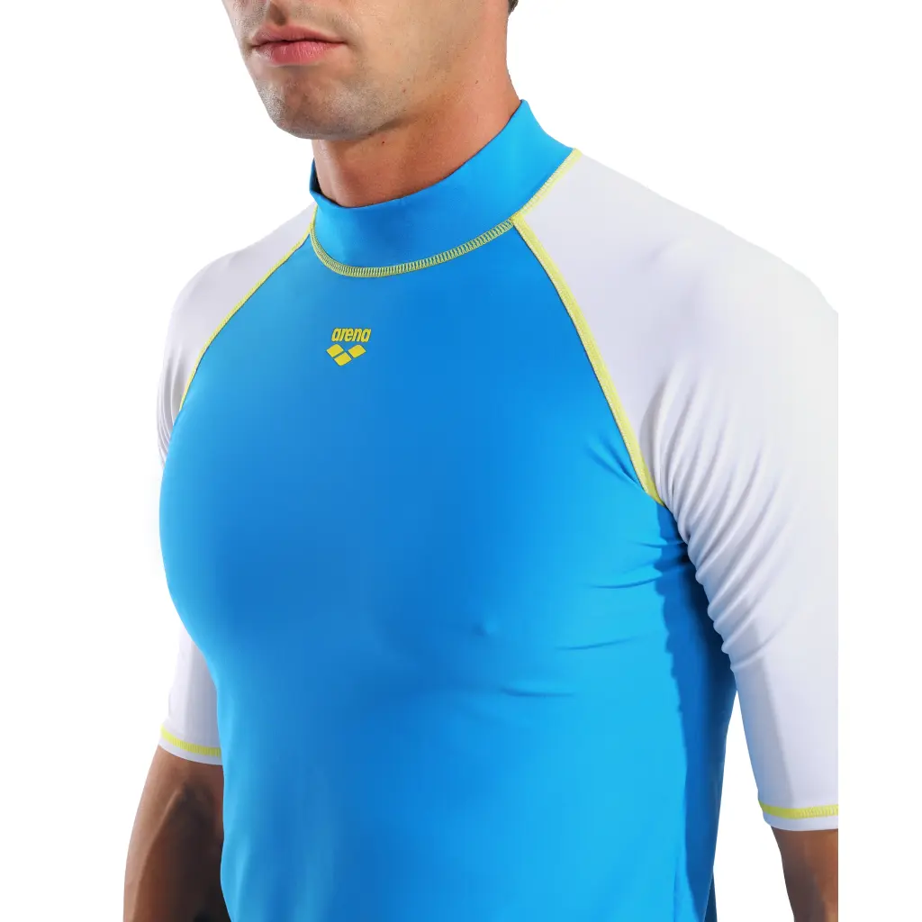 Ανδρική κοντομάνικη αντηλιακή μπλούζα Arena Rash Vest S/S Graphic (χρώμα Turquoise/White).