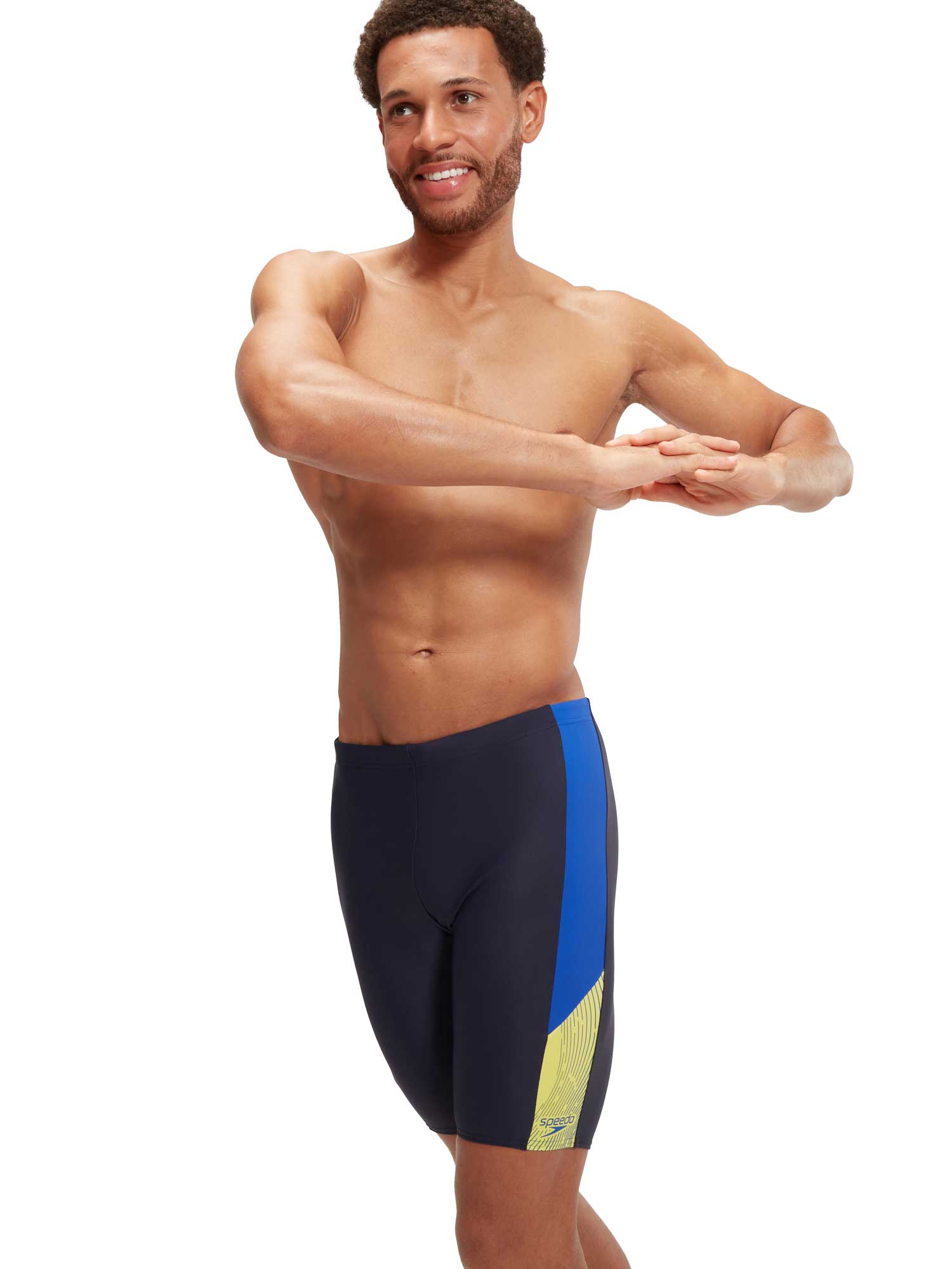 Απλό στυλ για καθημερινές συνεδρίες κολύμβησης. Ένα από τα αγαπημένα του Speedo, το Dive Jammer μαγιό διαθέτει στο πλάϊ έντονο κίτρινο και μπλε σχέδιο πάνελ δύο αποχρώσεων.