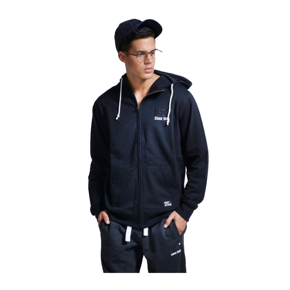 Ζακέτα φούτερ κουκούλα με φερμουάρ και τσέπες μπροστά, φοράει στρογγυλό κέντημα πίσω στην κουκούλα, κέντημα μπροστά στο στήθος και μικρό λογλοτυπο κάτω αριστερά.