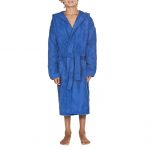 Μπουρνούζι για παιδιά με κουκούλα. Μπορεί να είναι χρήσιμο και για τα κορίτσια και τα αγόρια. Κατάλληλο για χρήση στο σπίτι, καθώς και μετά το μπάνιο στην πισίνα, ντους. Σύνθεση – 100% βαμβάκι.