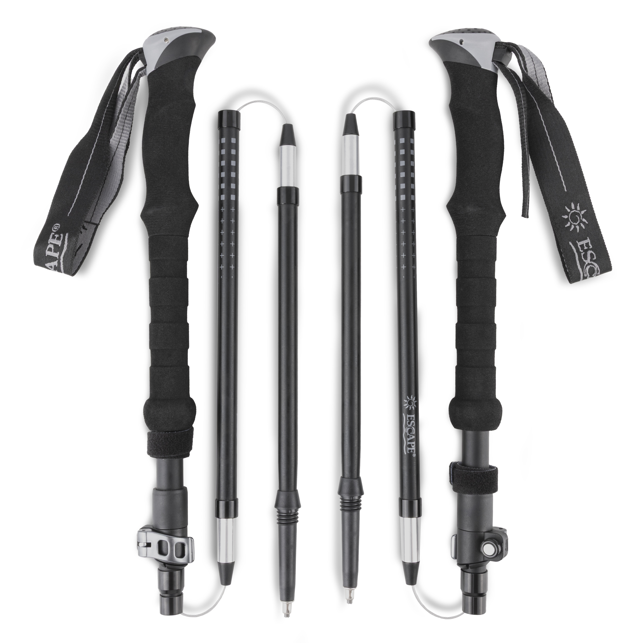 Τα Escape Trailblaze Poles μπορούν εύκολα να ρυθμιστούν καθ’ ύψος και να προσαρμοστούν στο ιδανικό ύψος για το χρήστη. Ο σχεδιασμός τους είναι σπαστός και τηλεσκοπικός. Τραβώντας το ένα κομμάτι του μπαστουνιού και ασφαλίζοντας το, τα σπαστά μέρη ενώνονται κάνοντας το μπαστούνι πολύ σταθερό. Στη συνέχεια οι αλλαγές γίνονται πολύ εύκολα και με ακρίβεια χάρις στο κλείσιμο Quick Lock που διαθέτουν. Το θετικό που έχει αυτός ο σχεδιασμός είναι ότι μαζεύεται πάρα πολύ κάνοντας το ύψος το μπαστουνιών μαζεμένων μόλις 37 εκατοστά (σε αντίθεση με τα 64 των απλών τηλεσκοπικών). Έτσι η μεταφορά τους είναι πιο εύκολη!