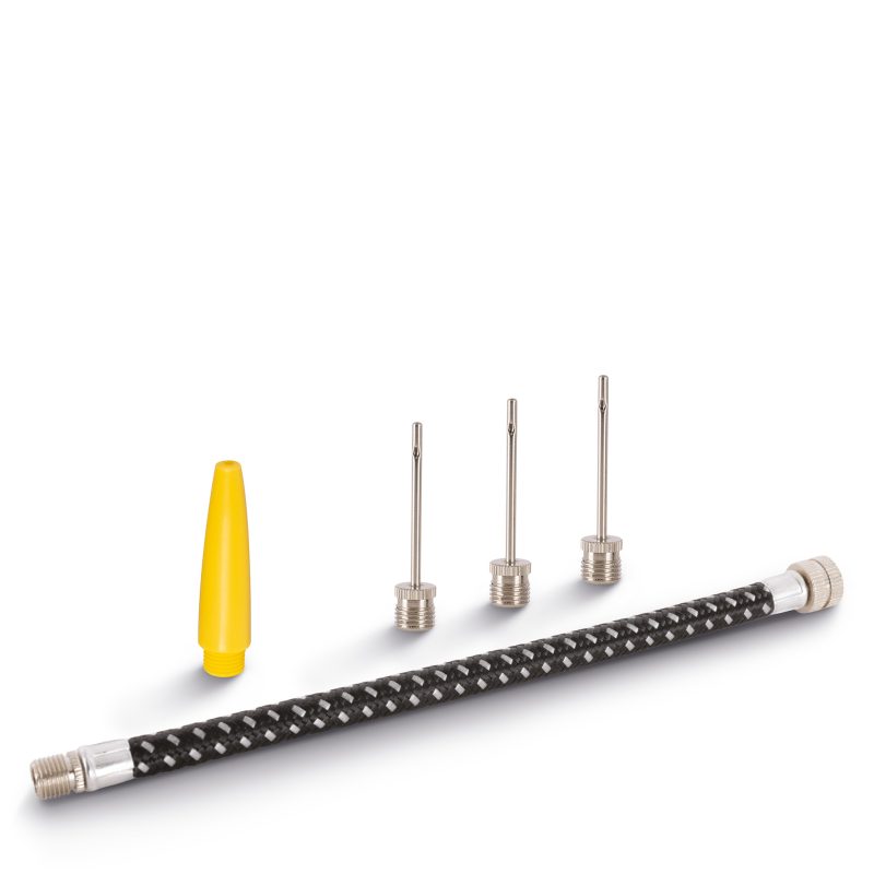Τρόμπα χειρός από την AMILA διπλής ενέργειας για γρήγορο φούσκωμα μπαλών. Η χωρητικότητα του αέρα, σε κύκλο διπλής ενέργειας φθάνει τα 55cc ενώ η πίεση φθάνει τα 40 psi. Ιδανική σε μέγεθος 25,7 εκατοστών μπορείτε να την έχετε πραγματικά παντού μαζί σας. Περιλαμβάνει μία μεταλλική μύτη για μπάλες. Τέλος για ακόμα μεγαλύτερη ευκολία περιλαμβάνει και λάστιχο επέκτασης.