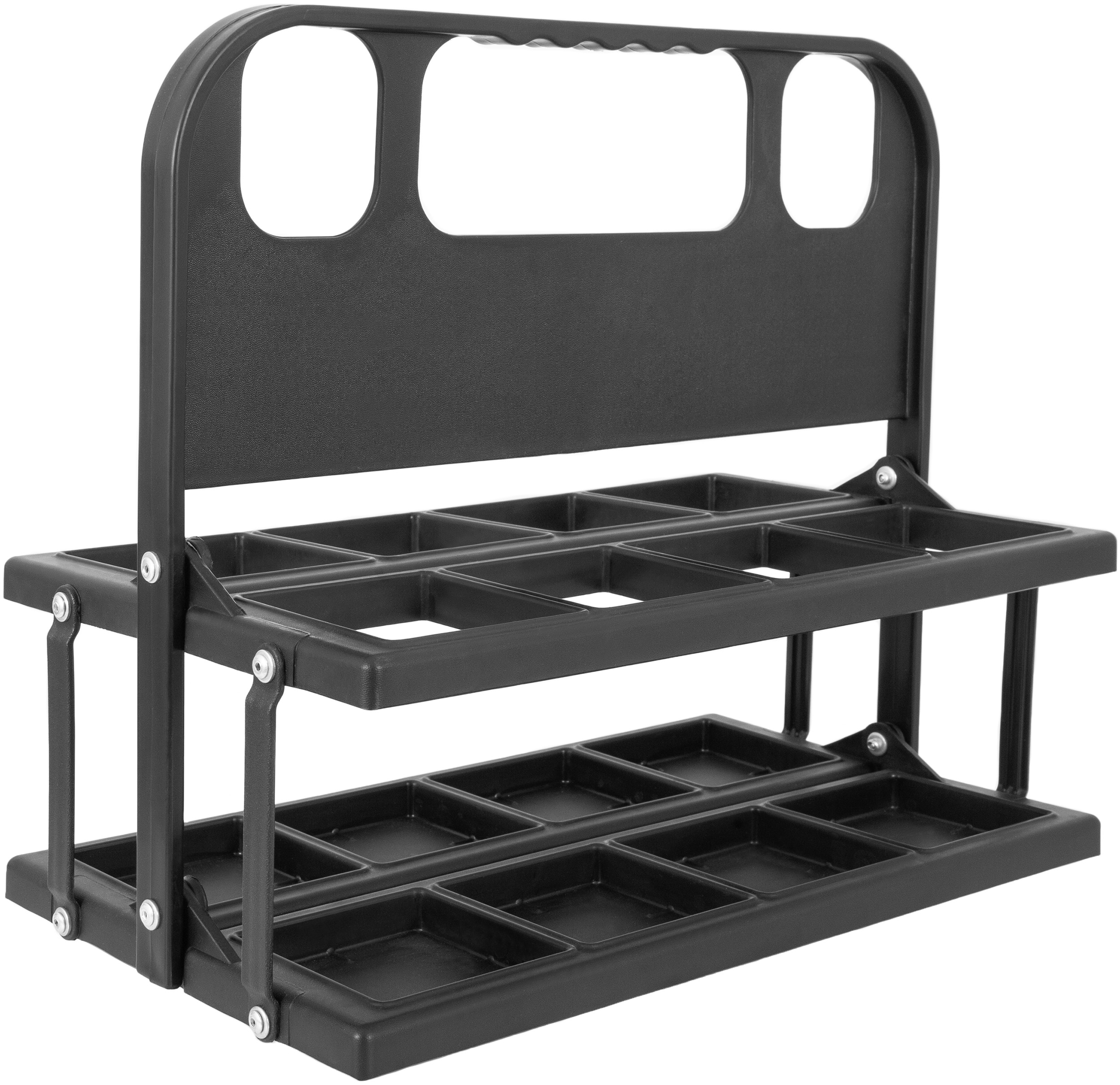 Θήκη μπουκαλιών για να μεταφέρετε εύκολα και γρήγορα τα μπουκάλια της ομάδας από τα αποδυτήρια προς τους πάγκους και πίσω. Κάθε θήκη χωράει 8 μπουκάλια, ενώ οι διαστάσεις έκαστης τρύπας είναι 8×8 εκατοστά.