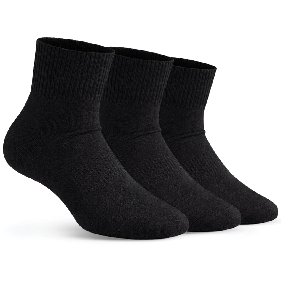 Αυτές οι αθλητικές κάλτσες από την Be:Nation θα γίνουν απαραίτητες για την προπόνηση και την καθημερινότητά σου. Έχουν ύψος που φτάνει μέχρι τον αστράγαλο, προσφέροντας εξαιρετική στήριξη και άνεση κατά τη διάρκεια της δραστηριότητάς σου. Η συσκευασία περιλαμβάνει τρία ζεύγη, καλύπτοντας τις ανάγκες σου για πολλαπλές χρήσεις. Με κλασικό μαύρο χρώμα, είναι ευέλικτες και μπορούν να συνδυαστούν εύκολα με τα αθλητικά σου ρούχα.