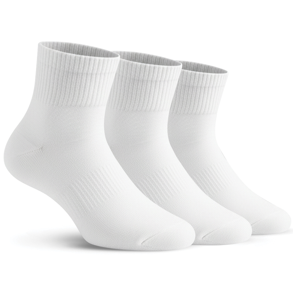 Αυτές οι αθλητικές κάλτσες από την Be:Nation θα γίνουν απαραίτητες για την προπόνηση και την καθημερινότητά σου. Έχουν ύψος που φτάνει μέχρι τον αστράγαλο, προσφέροντας εξαιρετική στήριξη και άνεση κατά τη διάρκεια της δραστηριότητάς σου. Η συσκευασία περιλαμβάνει τρία ζεύγη, καλύπτοντας τις ανάγκες σου για πολλαπλές χρήσεις. Με κλασικό λευκό χρώμα, είναι ευέλικτες και μπορούν να συνδυαστούν εύκολα με τα αθλητικά σου ρούχα.