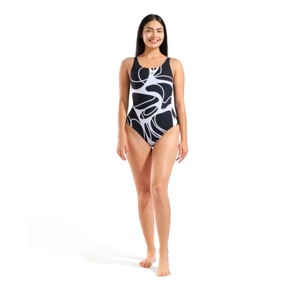 Τα υφάσματα Sensitive® Fit με 68% ανακυκλωμένο πολυαμίδιο συνδυάζουν διαμορφωτική δύναμη, υποστηρικτική ελαστικότητα και ελαφριά αίσθηση, ώστε να νιώθεις υπέροχα μέσα και έξω από το νερό. Ανθεκτικό στο χλώριο, με γρήγορο στέγνωμα και προστασία UV, για να είσαι έτοιμη για κάθε δραστηριότητα στο νερό.