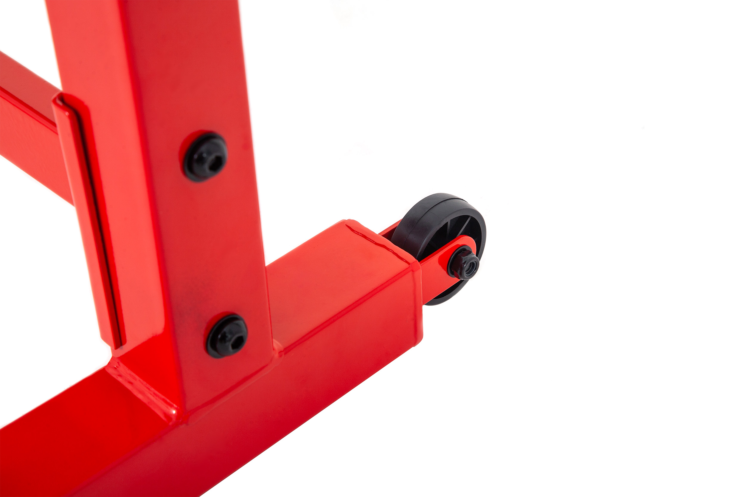 To Amila GluteMaster δεν περιλαμβάνει κινούμενα μέρη (με εξαίρεση τους τροχούς μεταφοράς) και διαθέτει ένα εξαιρετικά στιβαρό σκελετό (δοκούς 5x5cm πάχους 2,5mm και πάτους από καουτσούκ μεγάλης πίκμανσης), γεγονός που το καθιστά ιδιαιτέρως σταθερό και ανθεκτικό σε βάθος χρόνου. Οι υψηλής ποιότητας τροχοί και η λαβή επιτρέπουν εύκολη μεταφορά και χειρισμό, ενώ το άψογο φινίρισμα, με τον πλούσιο κόκκινο χρωματισμό, το κάνει να ξεχωρίζει όπου κι αν τοποθετηθεί. Μόνο το GluteMaster της AMILA έχει τη δυνατότητα να προσαρμόζεται στο ύψος του κάθε ασκούμενου (στα 41, 44 και 46cm αντίστοιχα), κερδίζοντας το βέλτιστο σημείο ώθησης του ισχίου. Μπορεί, έτσι, να προπονήσει άτομα όλων των επιπέδων, από μικρά παιδιά μέχρι μεγαλόσωμους αθλητές. Το παχύ και ανθεκτικό δερμάτινο μαξιλάρι ελαχιστοποιεί τον κίνδυνο τραυματισμού, ενώ η υπόλοιπη κατασκευή αποτρέπει τυχόν αυτοσχεδιασμούς (όπως την τοποθέτηση πάγκου ή step). Οι ειδικοί αποσπώμενοι πείροι (άγκιστρα) επιτρέπουν την εκτέλεση της κίνησης έναντι ελαστικής αντοχής, έτσι ώστε να μπορείς να επιτύχεις μια απίστευτη προπόνηση γλουτιαίων χωρίς τις απαιτήσεις των ελεύθερων βαρών. Τα ελεύθερα βάρη, βέβαια, μπορούν να χρησιμοποιηθούν αυτόνομα ή συνδυαστικά, για ακόμα μεγαλύτερα αποτελέσματα.