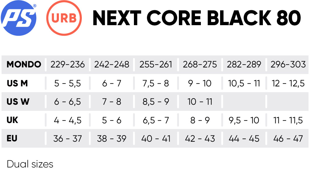 Πατίνια Powerslide Next Core Black 80 Freeride Urban για πατινάζ στην πόλη. Προσαρμόσιμη σκληρή μπότα με χαμηλά πλαίσια Elite TRINITY και γρήγορους τροχούς 4x80mm.