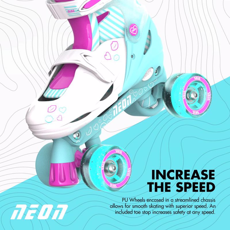 Τα NEON 2in1 Combo Skates φέρνουν το καλύτερο και από τις δύο λέξεις. Πραγματοποιήστε εύκολη εναλλαγή μεταξύ Inline και Quads χάρη στο σύστημα γρήγορης απελευθέρωσης μπουλονιών. Οι τροχοί τόσο του Inline όσο και του Quad διαθέτουν μια ειδική τεχνολογία λάμψης που τους κάνει να ανάβουν όταν κινείστε, χωρίς να απαιτούνται μπαταρίες! Με τροχούς PU, ρυθμιζόμενες πόρπες και ενσωματωμένη άνετη επένδυση στην εσωτερική μπότα, τα Combo Skates μας σχεδιάστηκαν με γνώμονα την άνεση και την ασφάλεια, για να προσφέρουν στον αναβάτη καλύτερη απόδοση.